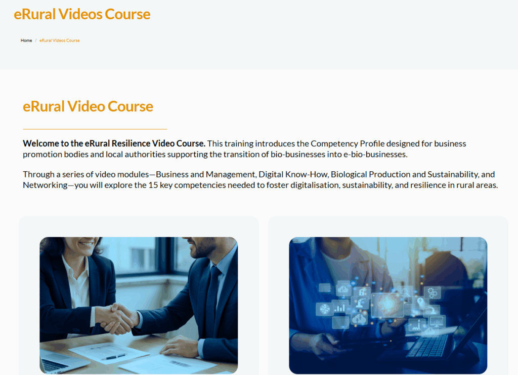 eRural Resilience offers a holistic solution, with a group of tools which will both, convert target groups into fully competent e-bio-business supporters, and allow fast launching